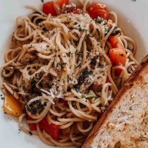 When you’re looking for a fun twist on pasta aglio e olio, this everything bagel pasta is for you. Savory sprinkles make everything taste better!